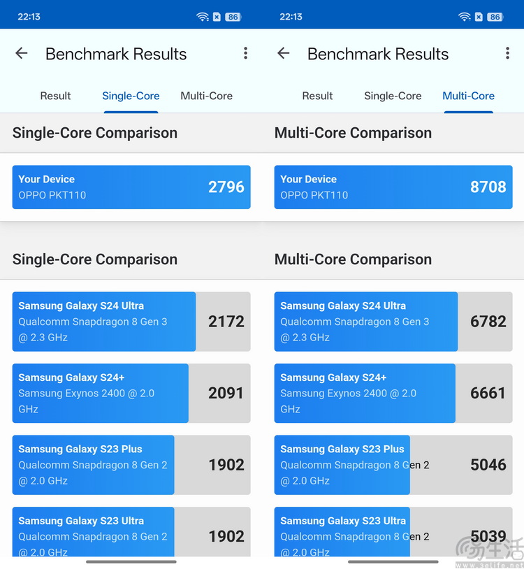 可以看到,在加上简单的散热措施之后,Find X8s的CPU单核性能大约可以提升5%、多核成绩则提升了6.6%左右。相比之下,在加上外置散热之后,Find X8s的3DMARK成绩要提升得更多一些,达到了13%左右。
