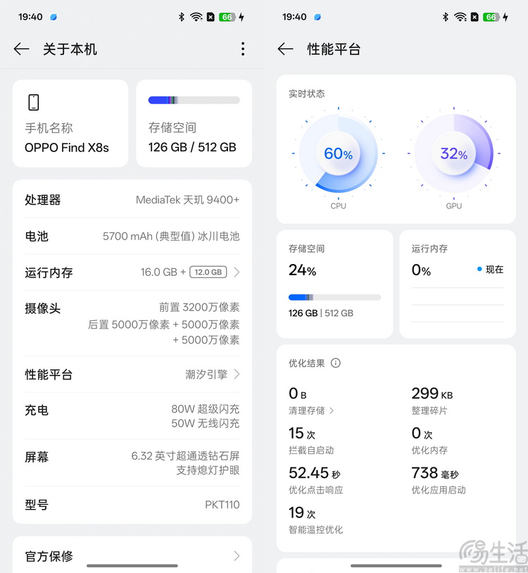 Find X8s(右)对比Find X8(左)