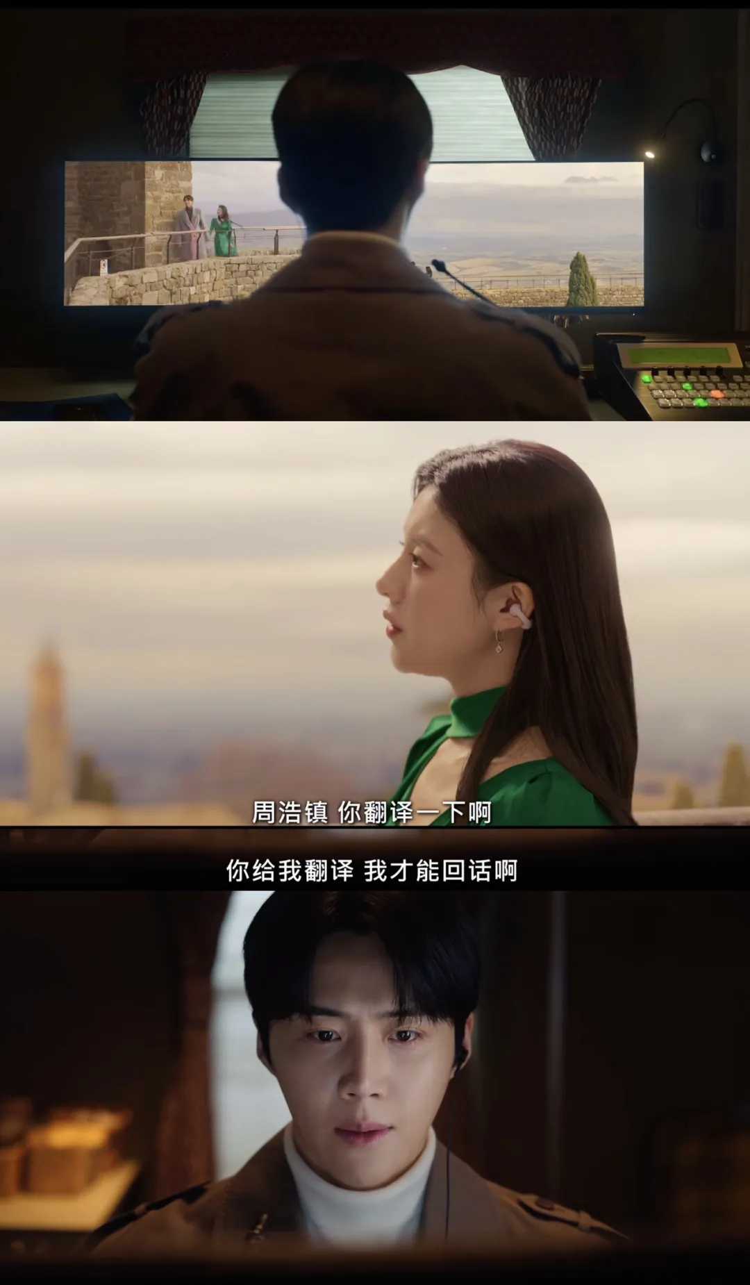 正当两人关系陷入第一个僵局时,女主受邀参加了一档国际恋综,而男主正是常驻口译员,他需要跟组并同声传译女主与外国男艺人的约会对话。于是在身份错位、沟通错位、情感错位这些内部矛盾之上,又多了异国他乡、感情第三者、人多眼杂这些外部矛盾。