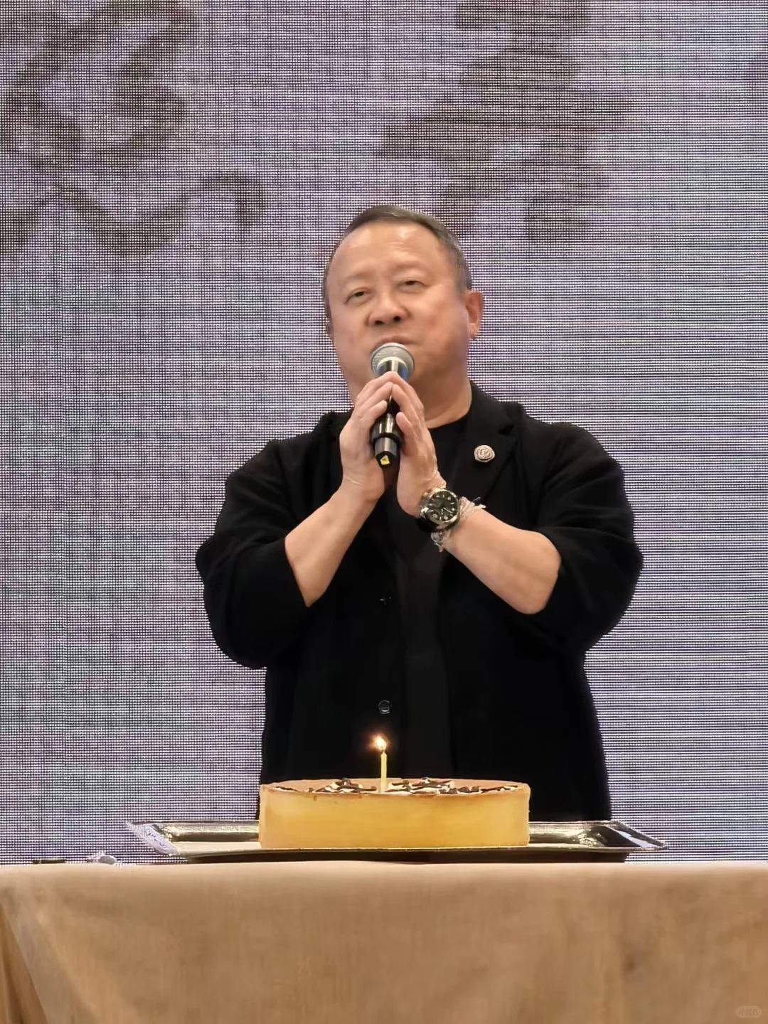 曾志伟的长女曾宝仪、长子曾国祥上台为父亲庆生,另外两个子女估计也在下面,曾志伟笑容满面,热情与来宾合照,玩得相当开心。