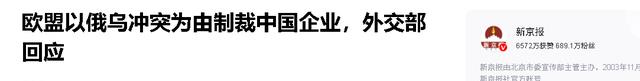 新京报:2024-12-17《欧盟以俄乌冲突为由制裁中国企业,外交部回应》