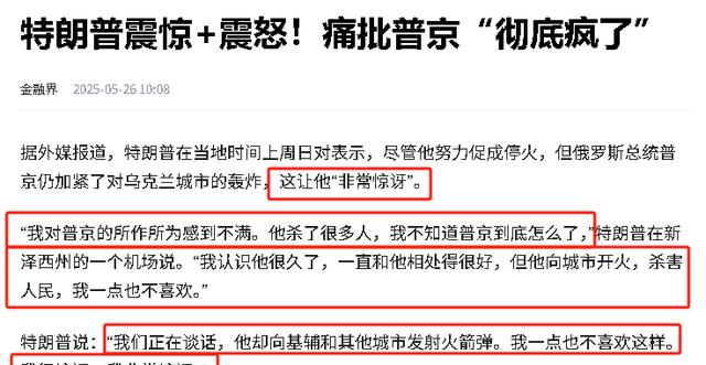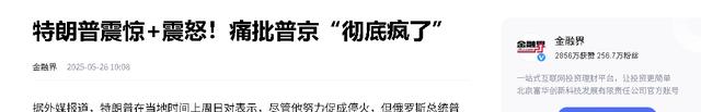 金融界:2025-05-26《特朗普震惊+震怒!痛批普京“彻底疯了”》