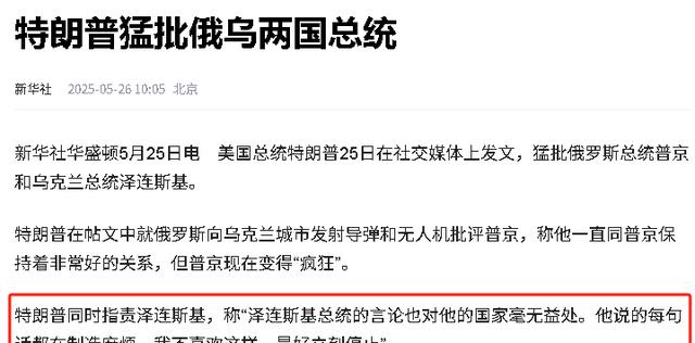 新华社:2025-05-26《特朗普猛批俄乌两国总统》