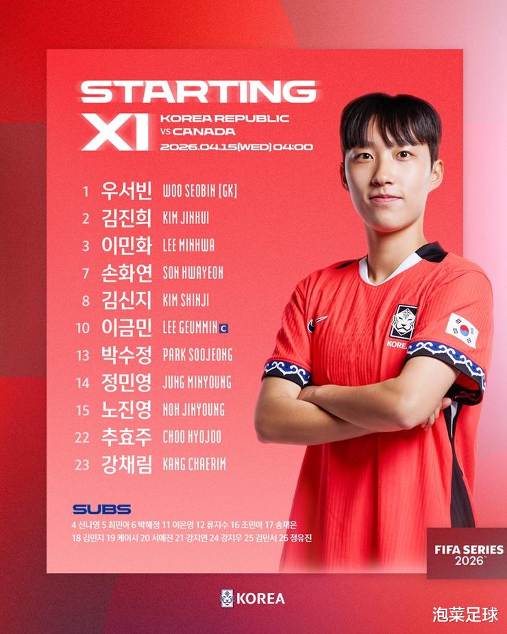 附:韩国女足2026FIFA系列赛对加拿大名单(4.14)
