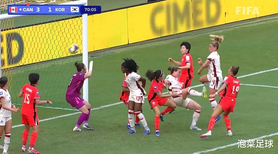 然而下半场,防线的一次意外失误让优势再度转化为劣势。第50分钟,加拿大开出任意球,门将禹瑞彬出击失误,凡妮莎·吉尔斯头球破门,将比分再度超出。丢球后,申相佑教练开始大幅换人调整。菲尔、姜智友、郑有珍三名年轻球员分别换下孙化妍、李金玟和姜綵林,试图通过新鲜血液为前场注入活力。第67分钟,郑有珍抓住对手后防失误形成单刀机会,可惜射门被化解。而两分钟后,加拿大女足利用角球机会,再次由凡妮莎·吉尔斯完成破门,将比分改写为3-1。两次定位球失分,是申相佑教练始料未及的。在多打一人的情况下未能将人数优势转化为胜势,最终给了对手可乘之机。最终,韩国队以1-3落败。
