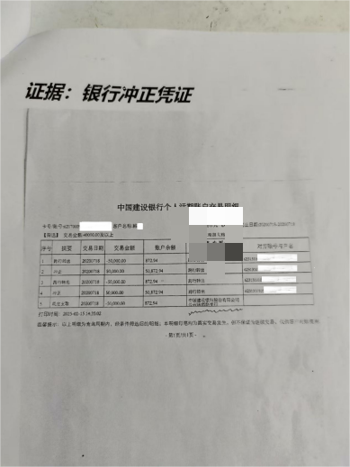 银行冲正凭证 (韩女士提供)
