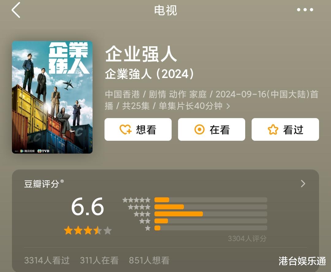 其中,《企业强人》的豆瓣评分最高,达6.6分,质量似乎在及格线以上。但另一方面,其评分人数为3304人,短评数量仅为841条,剧评数量仅为37条,小组讨论帖文20条,这表明参与评分和讨论的观众较少,该电视剧在内地市场的关注度相对较低。