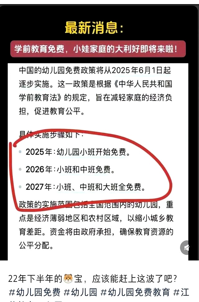 所以,下次再听到“幼儿园免费”的消息,请不要急着转发,先冷静一下,思考一下。真正的教育公平,不是“免费”二字能够概括的,它需要我们共同努力,才能实现。而在这条道路上,理性思考,独立判断,才是我们最应该拥有的品质。让我们一起努力,为孩子们创造一个更美好的教育未来!