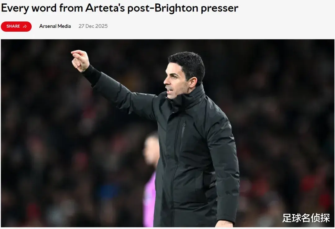 阿尔特塔出席了赛后新闻发布会,我们来看看阿森纳主帅的发言。