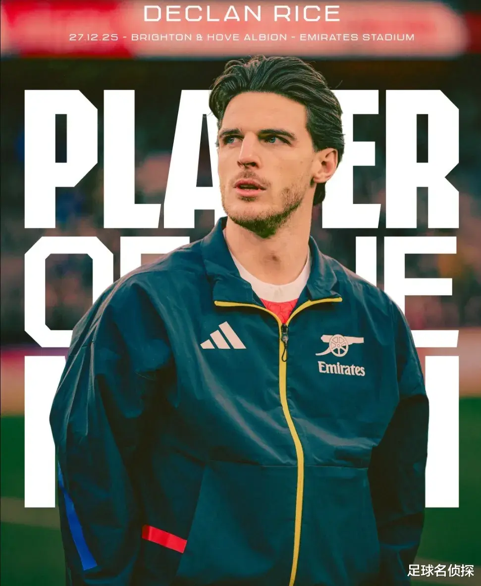 赖斯被阿森纳官方票选为了本场比赛最佳球员。