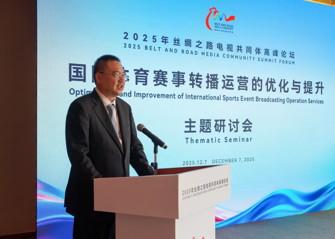 12月7日,由中央广播电视总台主办的2025年丝绸之路电视共同体高峰论坛国际体育赛事转播运营主题研讨会,在广东阳江海陵岛召开。十余位来自国内外的媒体机构代表、体育赛事运营专家齐聚一堂,围绕“国际体育赛事转播运营的优化与提升”主题,共话技术创新、国际协作与生态构建,探索国际赛事传播高质量发展新路径。