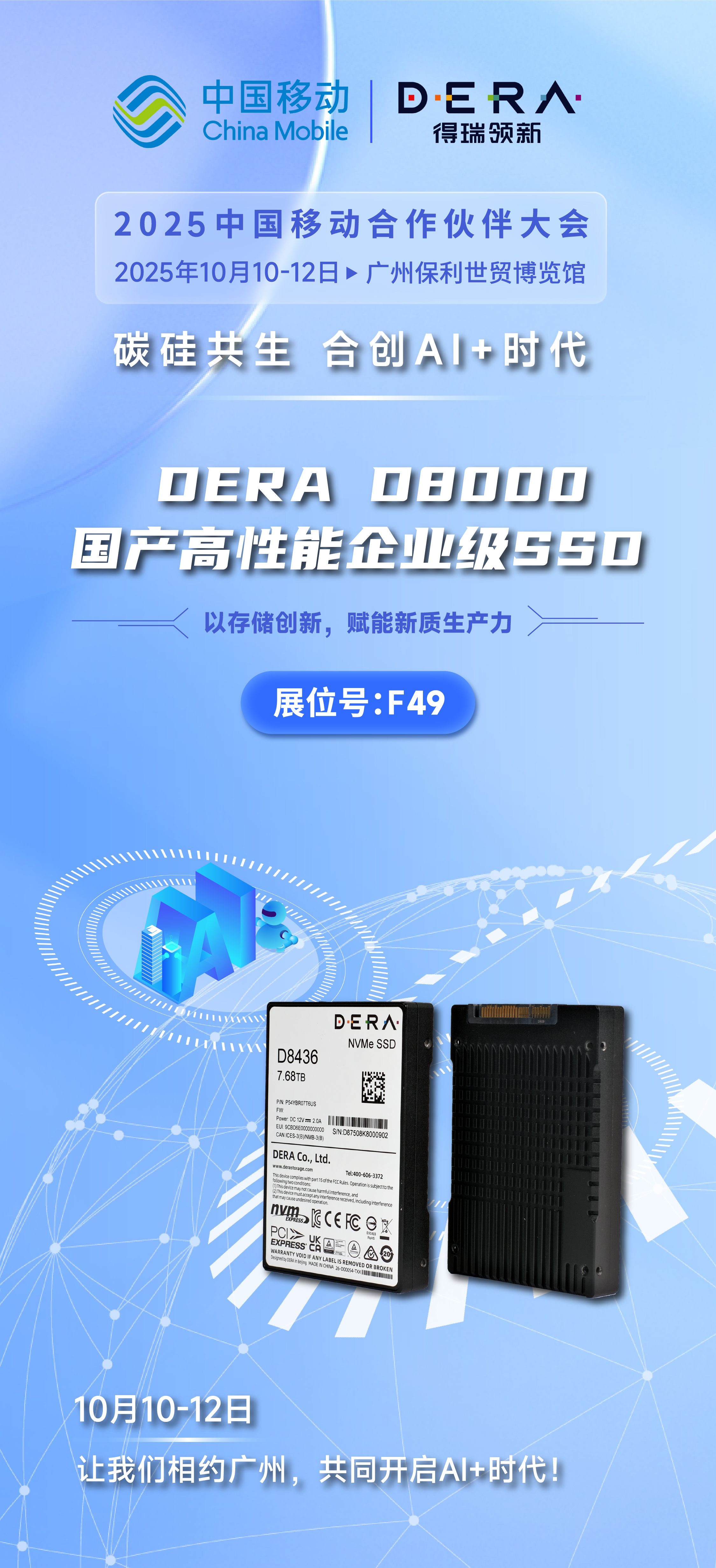 以 “碳硅共生 合创AI+时代” 为主题的第13届中国移动全球合作伙伴大会,将于2025年10月10日至12日在广州保利世贸博览馆盛大启幕。作为中国移动深度合作伙伴与企业级存储领域创新者,得瑞领新将携核心存储解决方案亮相展会,与全球数百家生态伙伴共探算力与实体产业的融合路径,为AI+时代筑牢存储底座。