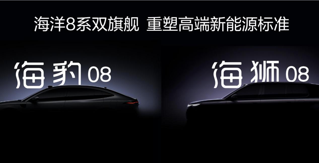 而在海洋系列四周年期间,海洋网正式公布全新高端旗舰——海洋8系定名。其中全新大型旗舰轿车被命名为“海豹08”;全新大型旗舰SUV被命名为“海狮08”。