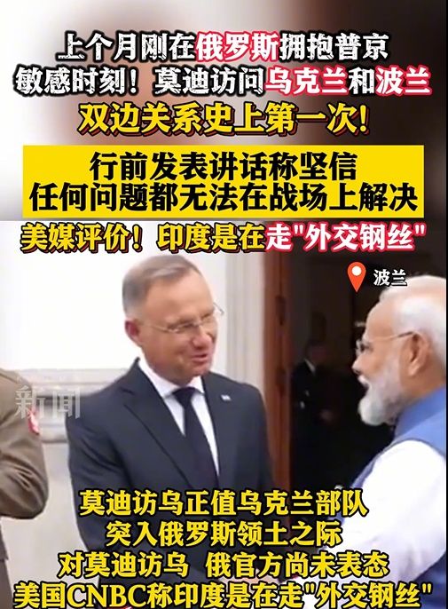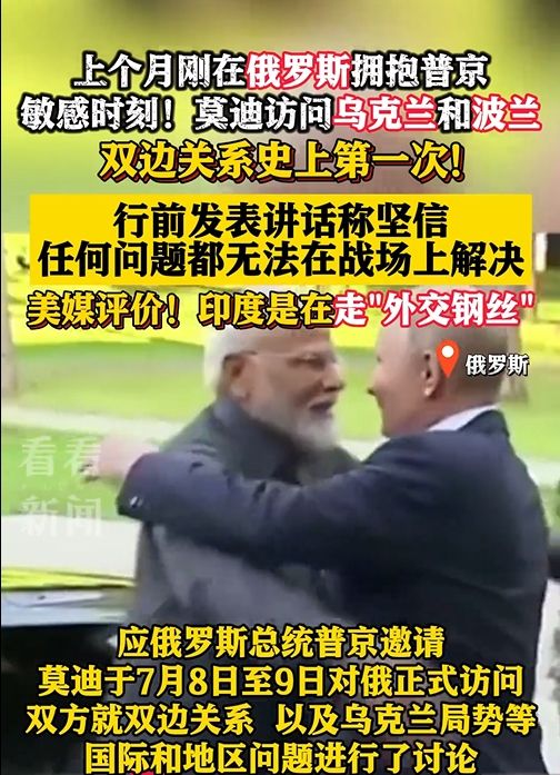 印度外交部的表态,更是明确了莫迪此行的目的:成为俄乌冲突中的信息桥梁,推动通过谈判解决冲突。这一立场,不仅体现了印度在国际关系中的独立性和灵活性,也彰显了其在复杂局势中的冷静与智慧。