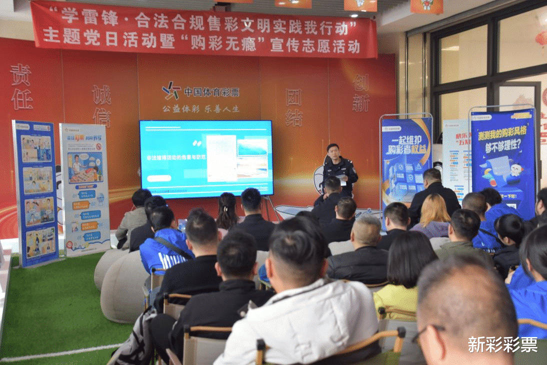 今年3月,福建省体彩中心联合福州市五凤派出所、泰和泰(福州)律师事务所在福建体彩中心附属楼一楼大厅开展了“学雷锋·合法合规售彩文明实践我行动”主题党日活动暨“购彩无瘾”宣传志愿活动,邀请福州15家体彩实体店代销者以及15名购彩者参与。福州市五凤派出所陈罡指导员以“非法赌博活动的危害与防范”为主题,通过身边的警示案例,围绕非法赌博活动的常见形式、危害、防范方法以及反诈技巧等内容,引导一线代销者和购彩者珍爱生活、远离非法赌博,共同维护社会和谐稳定。
