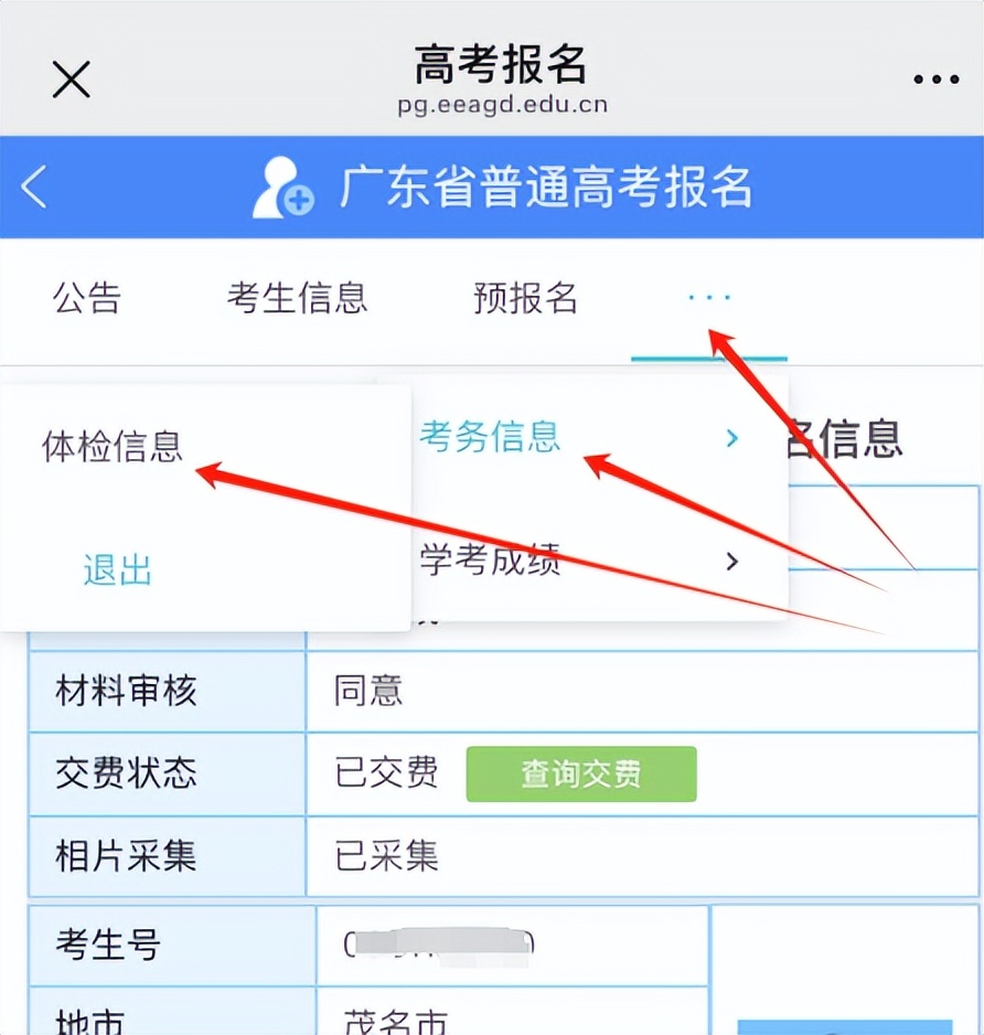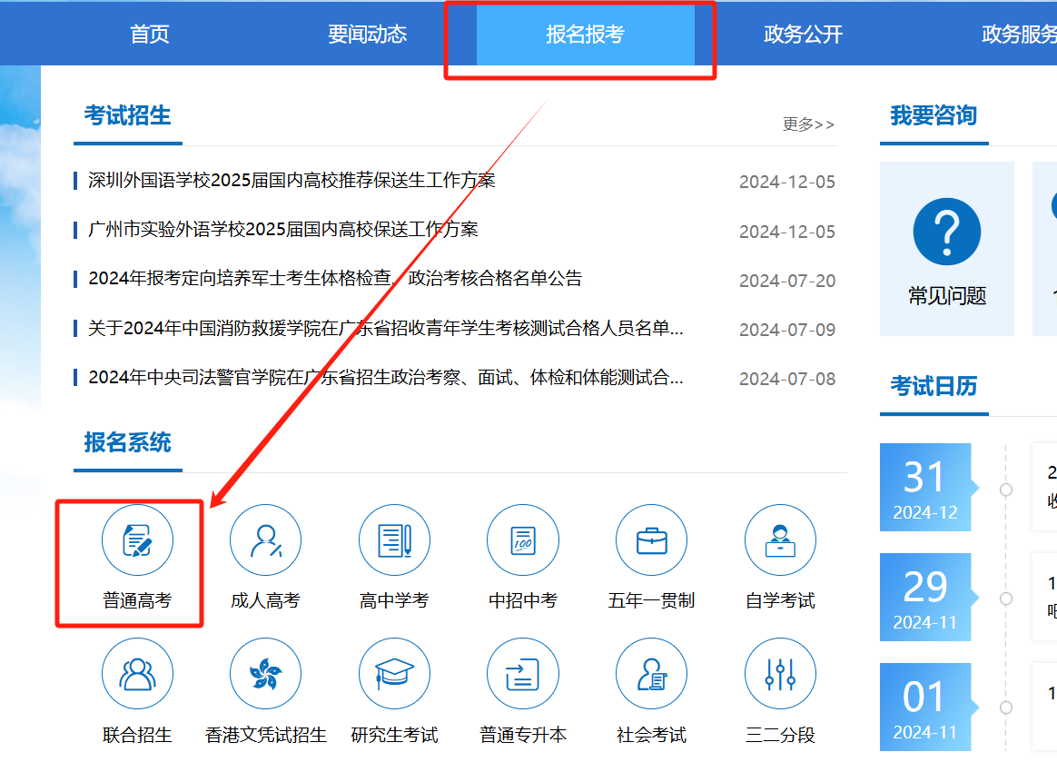 体检查询步骤浏览器搜索“广东省教育考试院”,进入官网选择【报名报考】点击普通高考