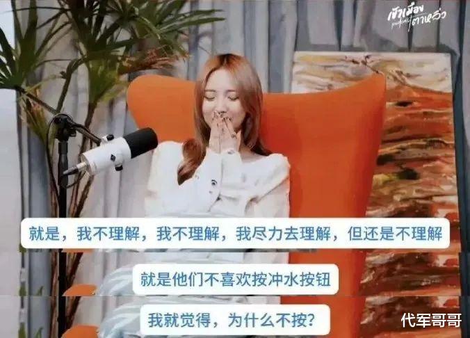 主持人提及 “泰国人是否觉得中国厕所脏” 时,郑乃馨笑着回应,称遇到过中国人上厕所不冲水,导致厕所脏,还表示难以理解为何有人不喜欢按冲水按钮,当主持人解释可能是感应冲水设备坏了,她则称坏的太多了。