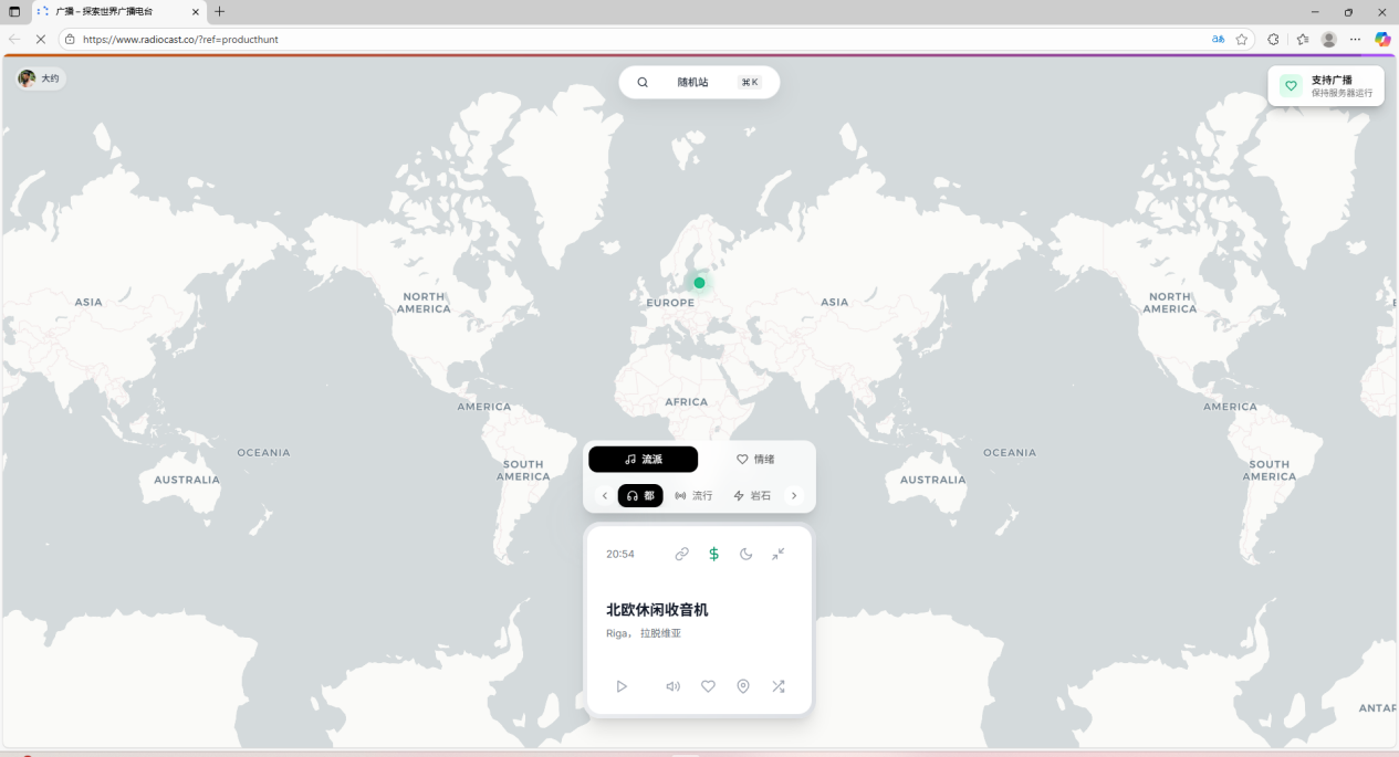 10、Radiocast这是一个能免费收听全球超过8000个实时电台的在线广播平台,只需要打开网页上的虚拟地球仪,点一下感兴趣的地区,就能轻松听到世界各地最新的新闻音乐和精彩谈话节目,不用注册,打开网站就能直接用,非常方便。
