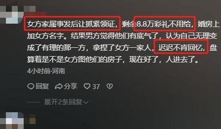 让不少网友将矛头对准了女方,认定女方就是为了要钱。