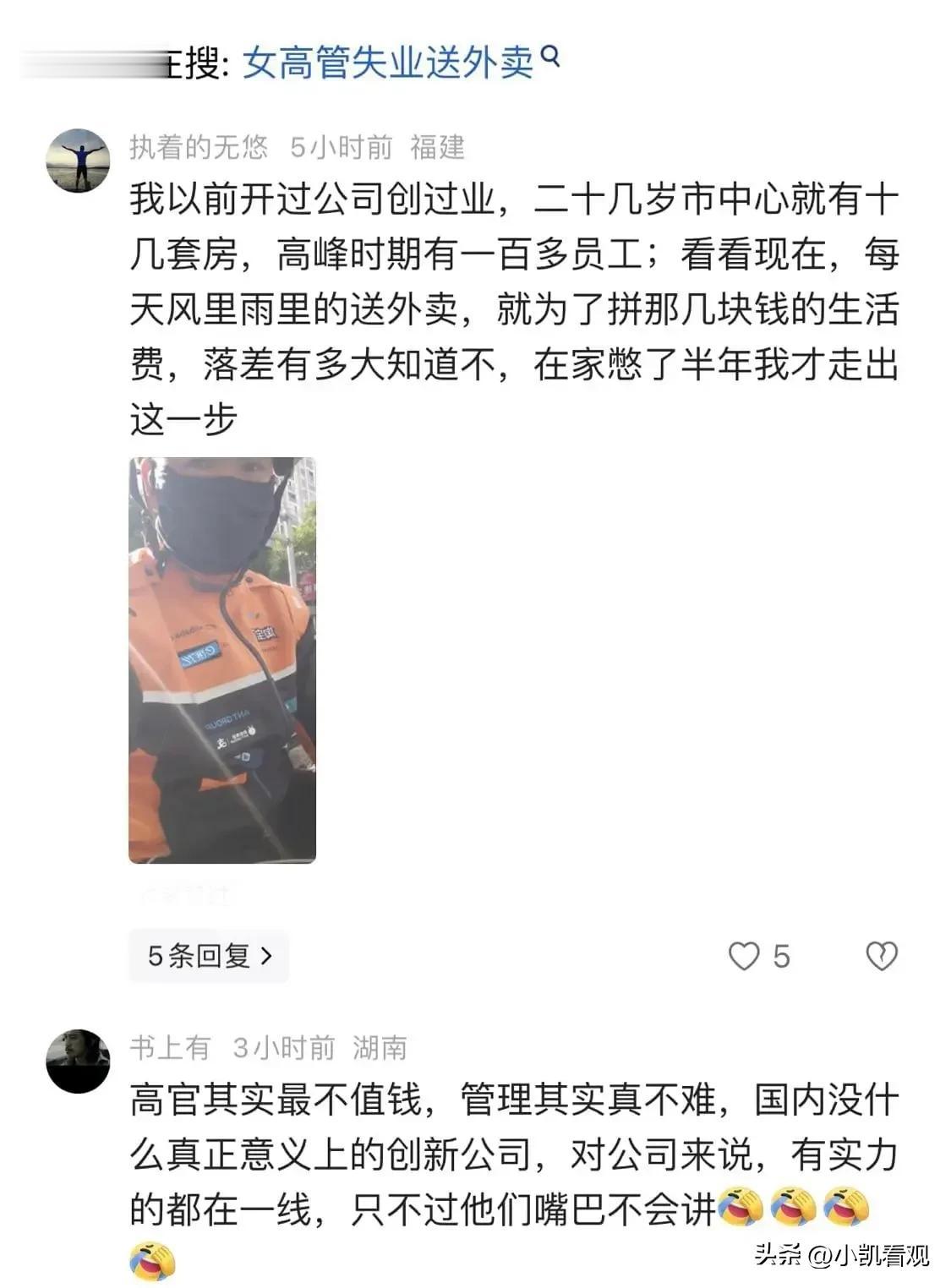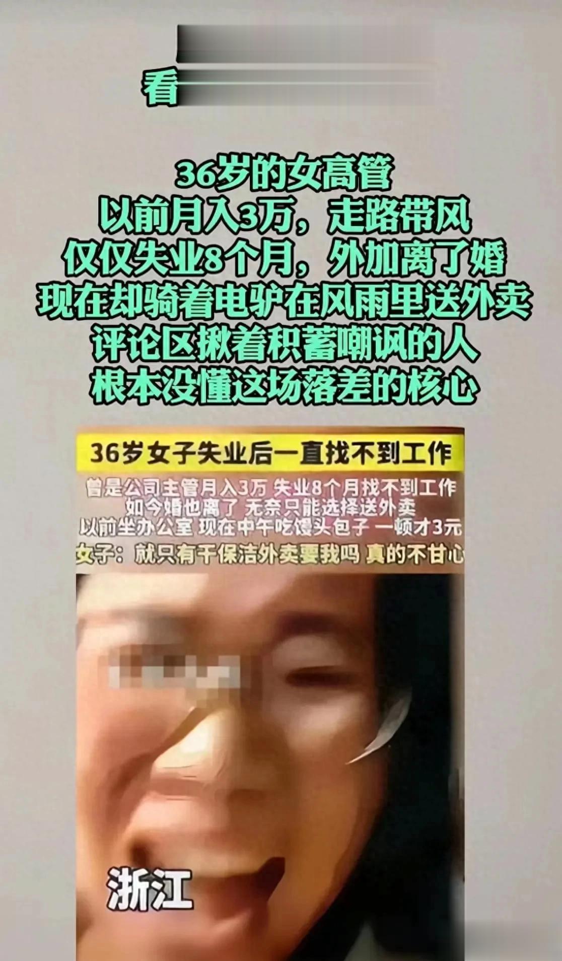 如果你是这位36岁的女高管,当你从云端跌落,你会选择在家躺平,还是像她一样,去送外卖养活自己?
