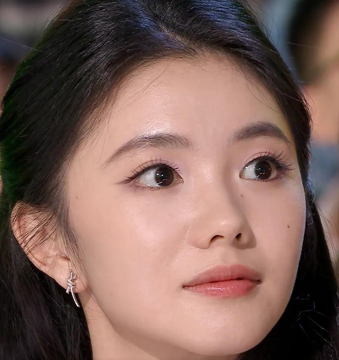 导播对刘浩存的镜头,竟大胆至极,怼脸特写,仿佛真个凑近她眼前,近得令人屏息。即便如此,镜头下的她,肌肤依旧细腻无瑕,宛若经过精心修饰,近乎完美无瑕。