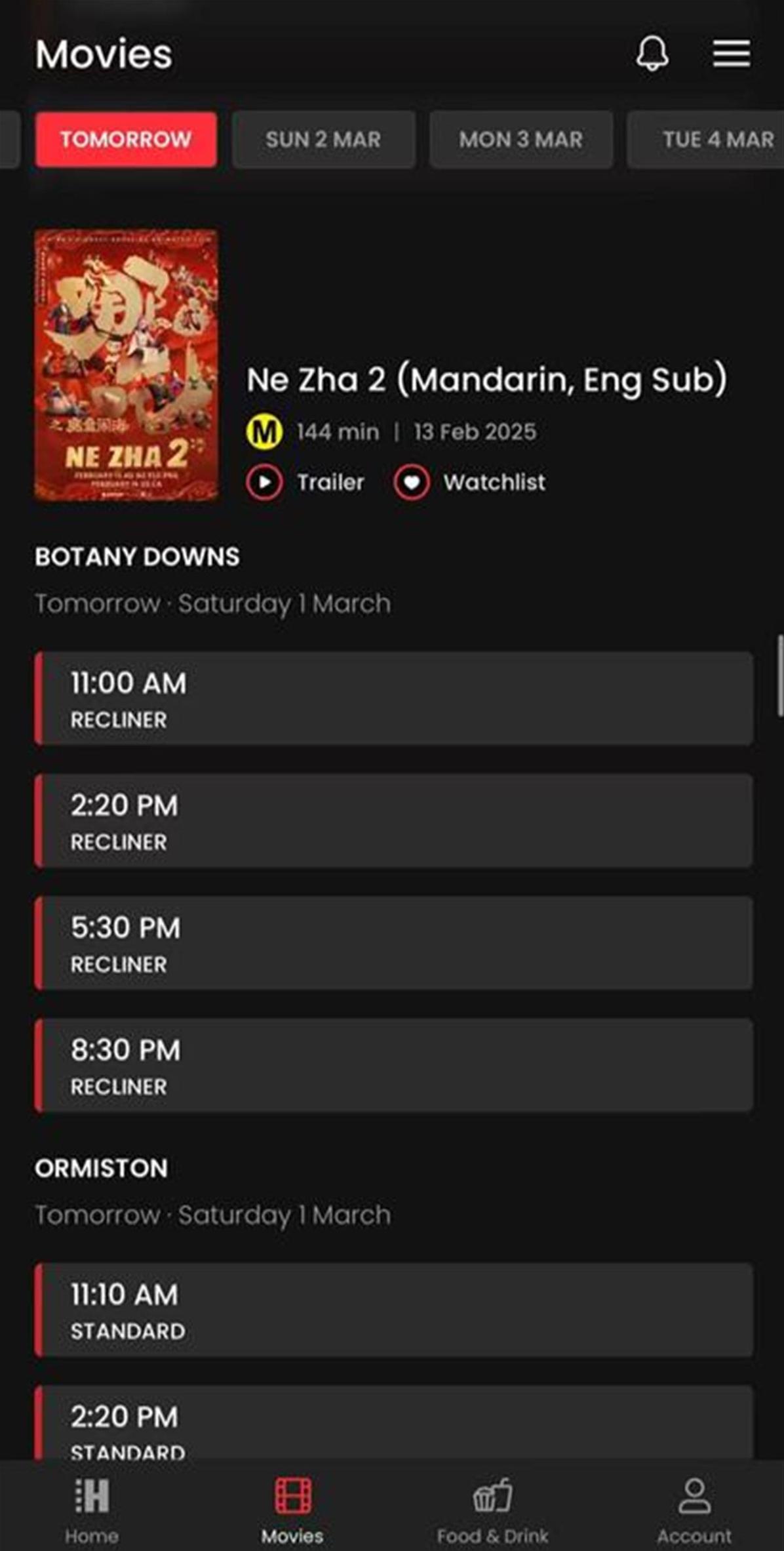 悉尼的影院也开始增加《哪吒2》的排片量,比如在Shopping Day当天,burwood华人区的影院《哪吒2》排片有11场,比《美国队长4》还多3场。