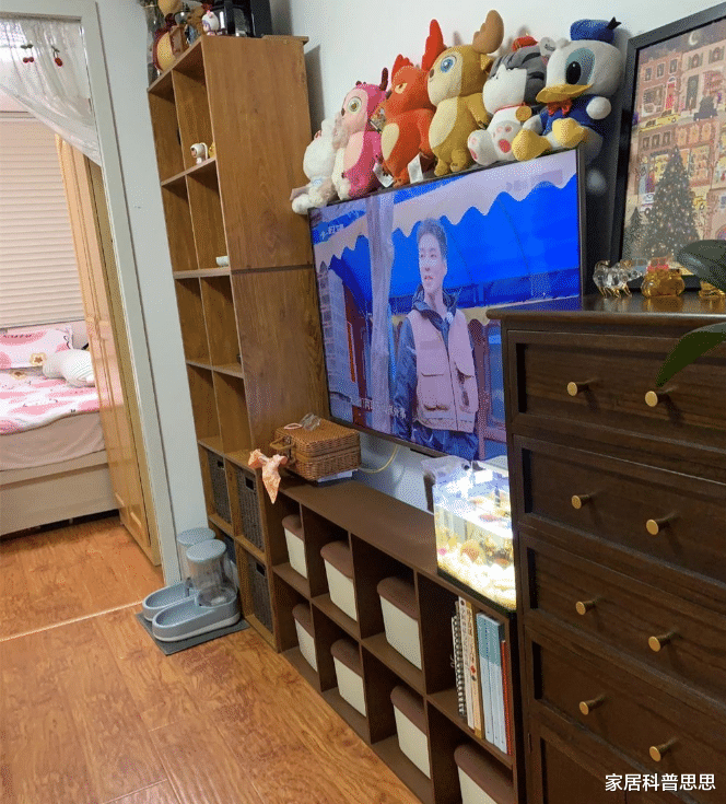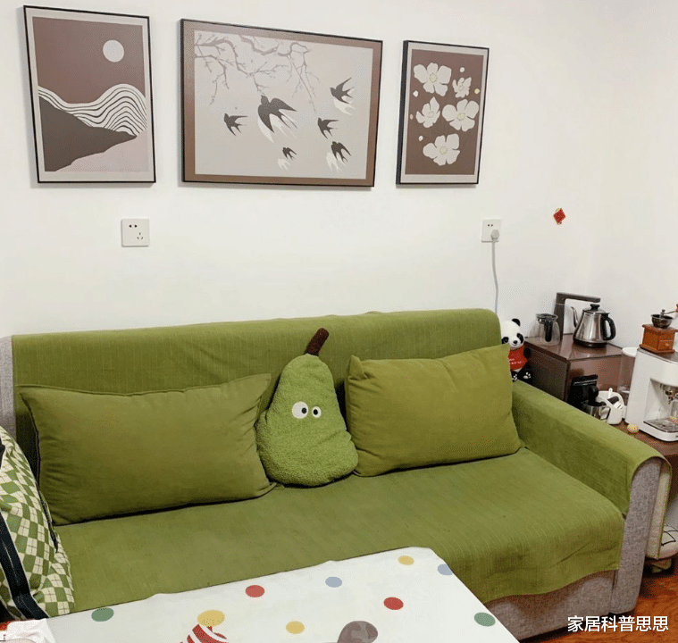 在客厅的布置上,这位女生的独到之处在于她通过三联壁画增添了空间的活力。为了解决无窗户的问题,她在墙上挂了一扇拱形的“假窗挂画”,既显得俏皮又增添了空间的趣味性。此外,电视墙经过巧妙设计,除了具备观影功能外,还兼顾了收纳需求,确保了空间的整洁与美观。