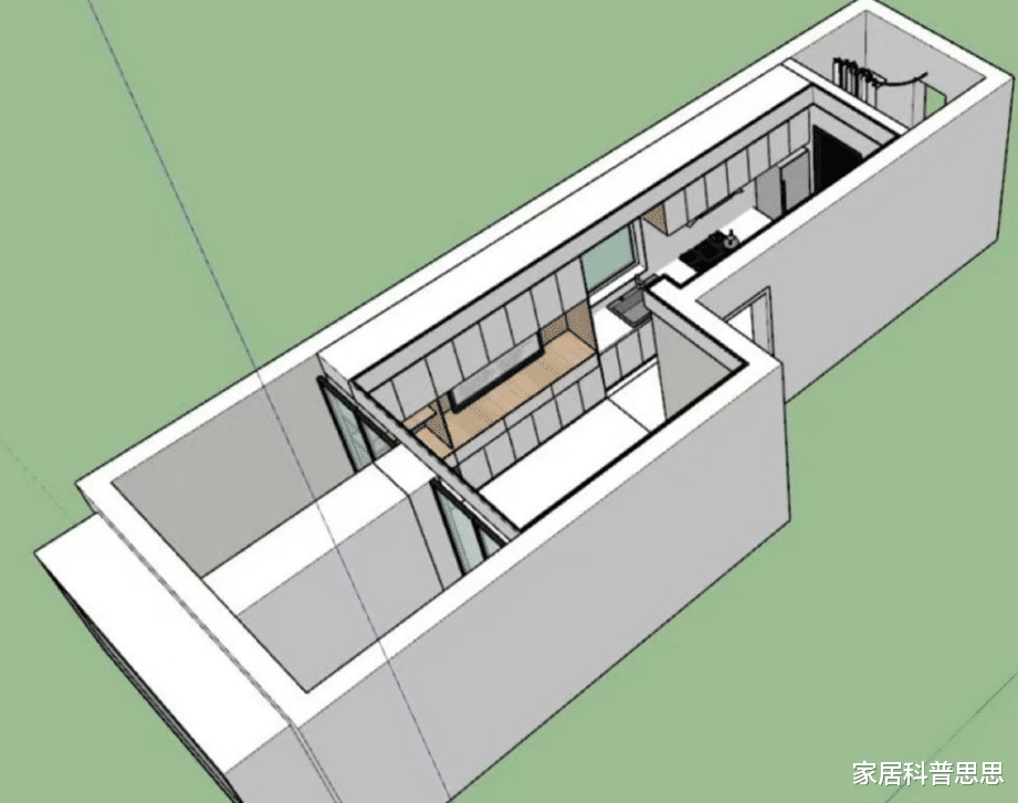 她的蜗居户型设计宛如一条狭长的通道,进门后便是厨房,右手边是一个超小的卫生间,虽然空间有限,却兼具基本的使用功能。客厅区域稍显宽敞,虽然没有窗户,但足以容纳沙发、茶几和电视柜的组合,使得这个小家也不至于显得过于拥挤。