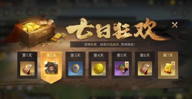 再瞧瞧那七日狂欢活动。活动第二天就送橙将孙策及高价值道具,这个力度在众多同类型游戏中可是少见的。孙策作为三国时期的一员猛将,在游戏里的战斗力也不容小觑,能够帮助新手玩家在前期就轻松应对各种战斗。很多新手靠着这个橙将孙策,在游戏初期可谓是顺风顺水,快速地成长起来。而且除此之外,活动期间还有大量其他的好东西等着大家去拿。