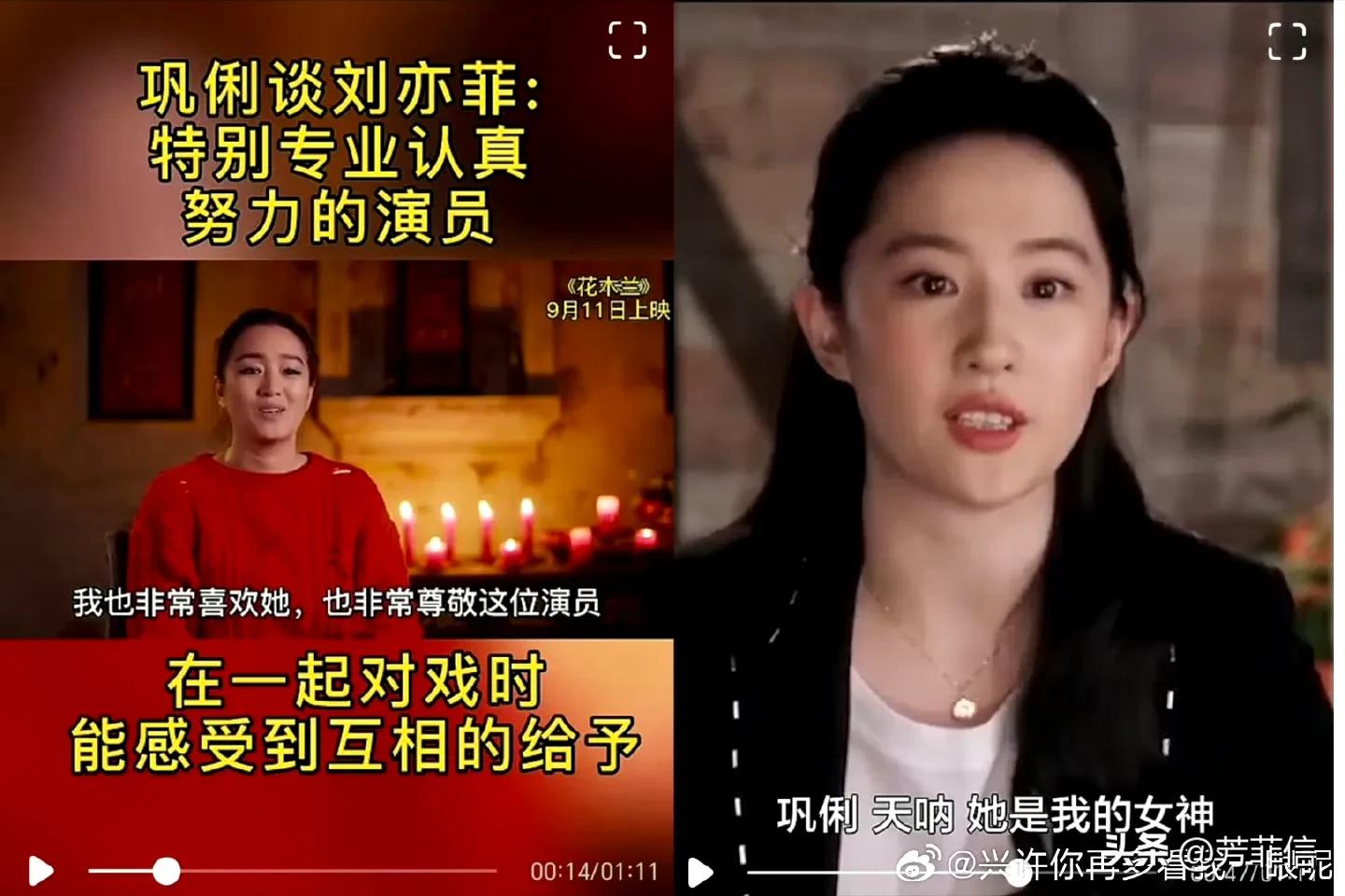 刘亦菲直言巩俐是她女神,巩俐则对刘亦菲给予了高度肯定。