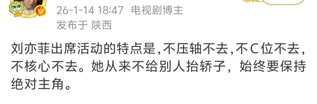 网友:刘亦菲现在内娱的活动,不给压轴待遇就不来。