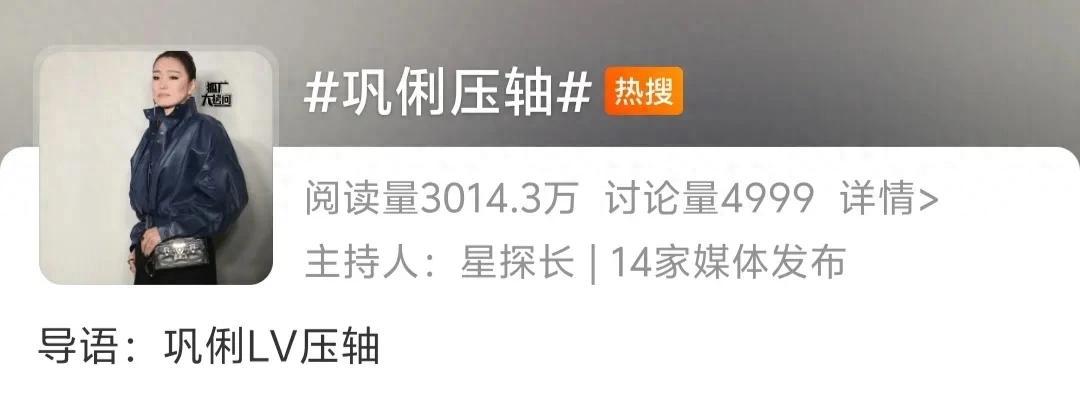 11月13号晚上,“巩俐压轴”登上了热搜。