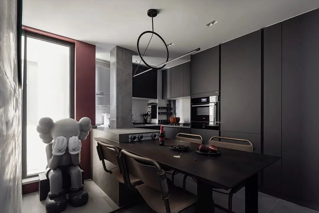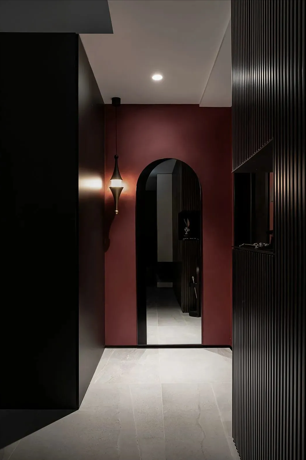 今天带你们解锁一个独居宝藏案例!90㎡的禁欲风小窝把「一个人的精致」玩明白了!先看玄关:深红+纯黑撞色太有层次感,隐形柜门+一盏金色壁灯,暗黑风里透着高级感。