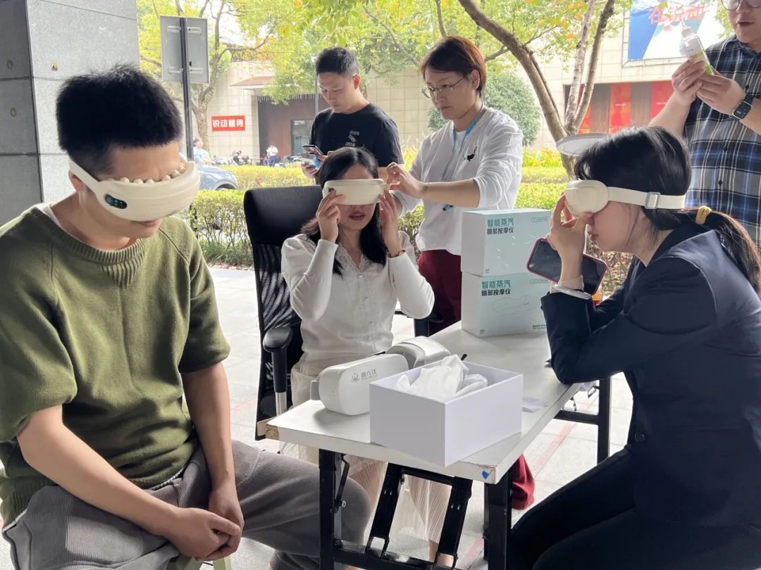 活动期间,朗星眸携手专业医疗团队,为园区职工提供了包括视力检测、裂隙灯检查、验光服务及视疲劳评估在内的多项免费眼健康检查服务,旨在早期发现并有效预防眼部疾病。特别是针对日益普遍的干眼症问题,活动现场特设了“望星遥干眼熏蒸体验区”,采用先进的干眼熏蒸技术,为受干眼症困扰的职工带来即时舒缓,重焕眼部活力。