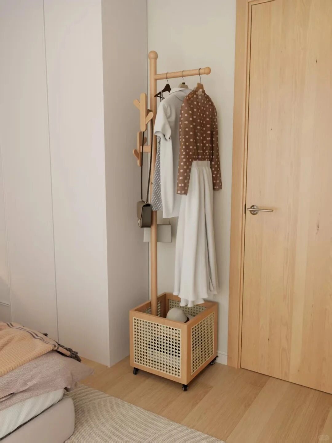 如果家里的装修风格是原木风,那么与树杈的衣架非常搭。我们单看这个衣架非常有艺术气息,而且它独特的造型,占地面积也很小。