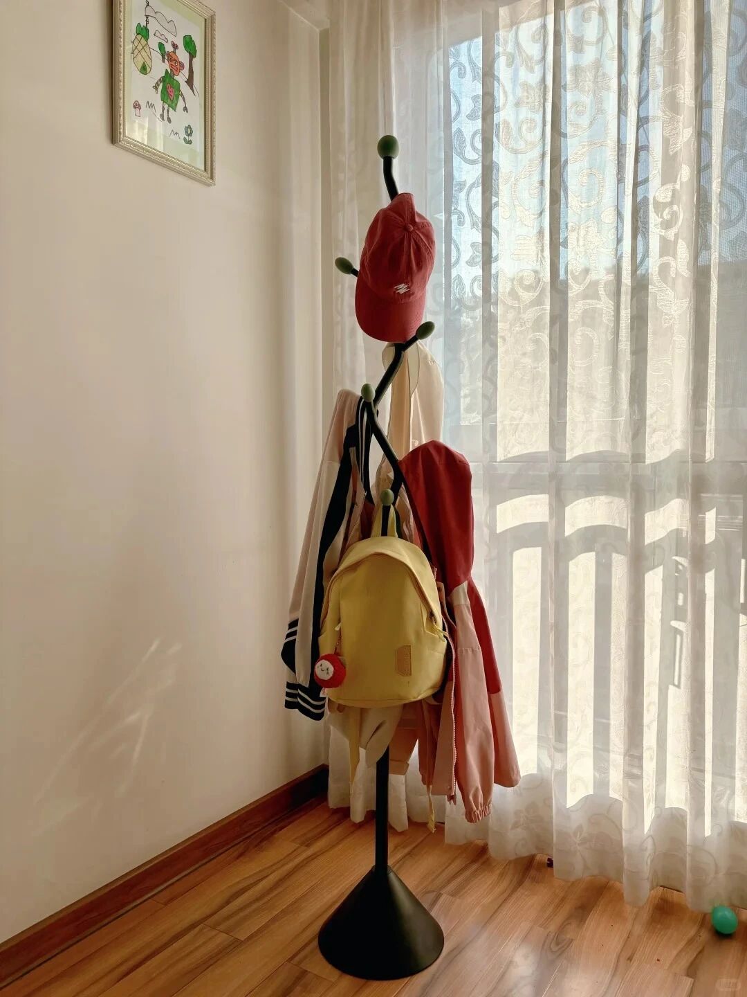 还没用的时候,发现这一切还挺美好的,可是当它挂满衣服之后,就变得非常凌乱,而且它的底部还不是特别稳,头重脚轻的容易倒,顶多能挂个小件儿。