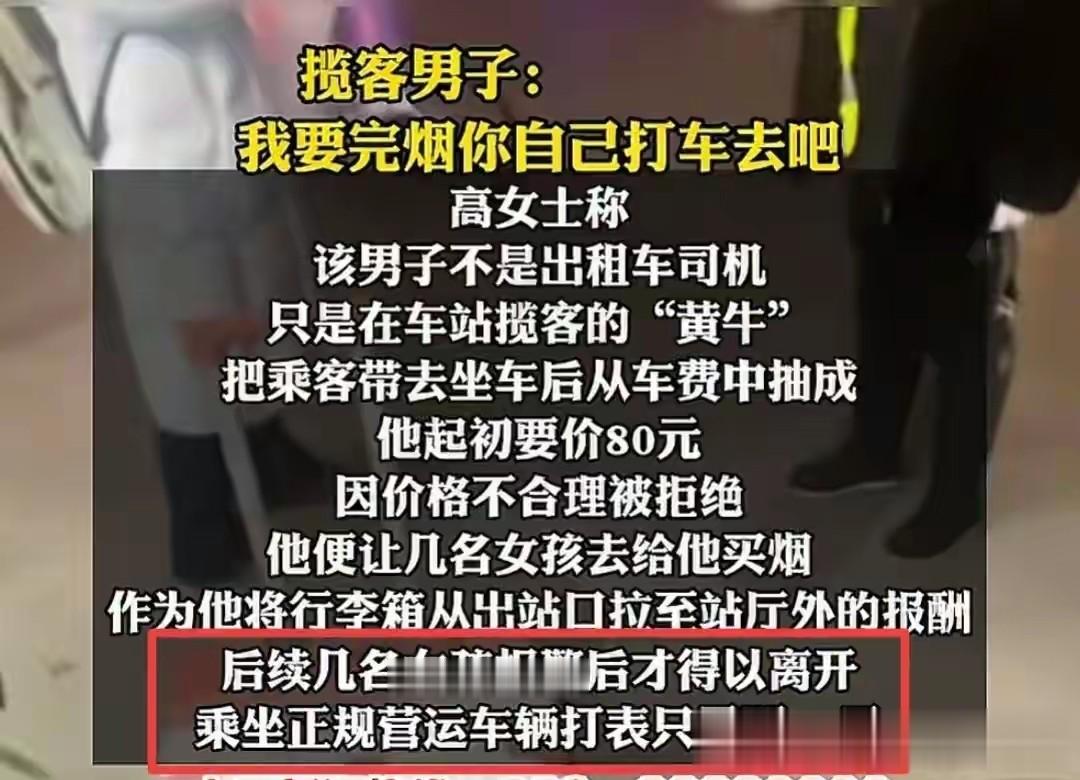 在得知女孩们目的地后,起初那男子要80元,被女孩们拒绝之后,他就又要70元,70元还不同意之后,又让几名女孩子给他买烟,意思是他从车站出口帮她们拉了行李箱,这不能白拉,要报酬。