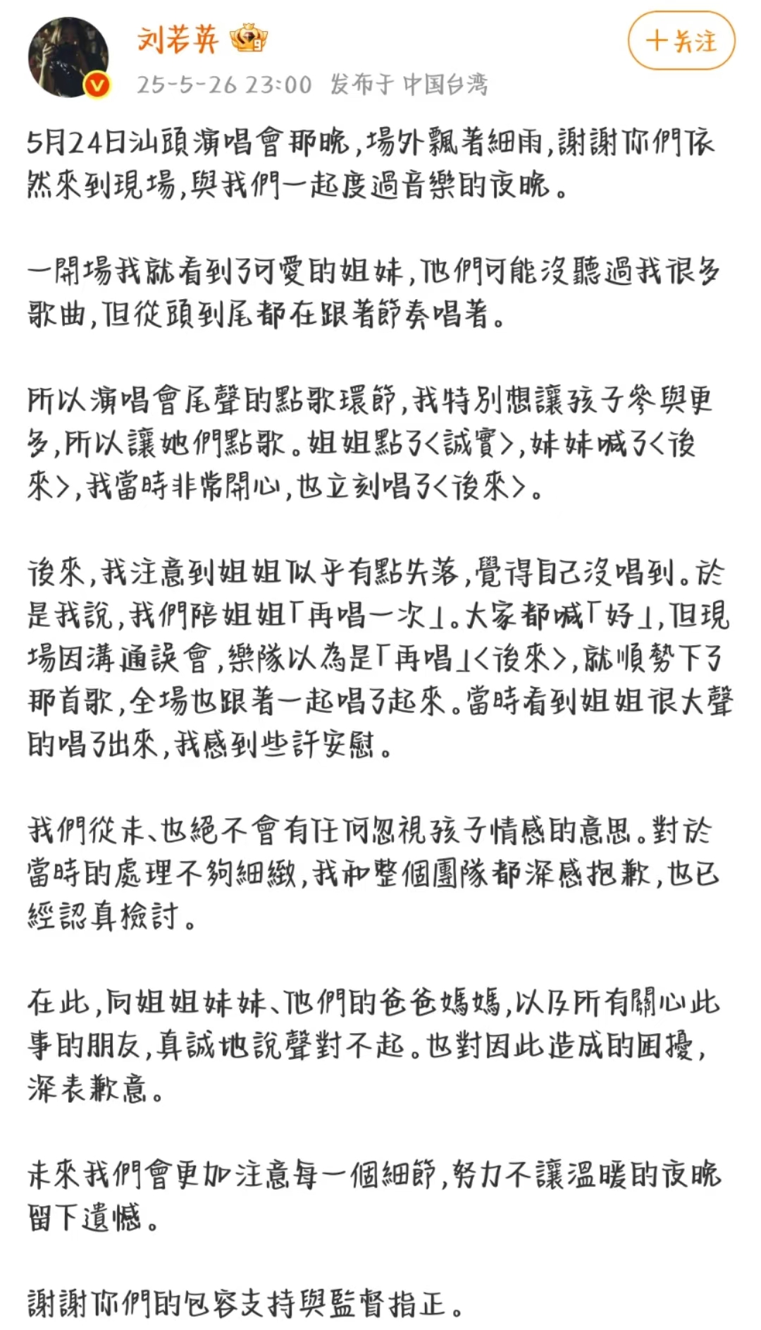 小编碎碎念刘若英最后道歉了,这件事也算有个温暖的结局。但它给我们提了个醒:在要求"姐姐让妹妹"之前,请先看看姐姐眼里的委屈。