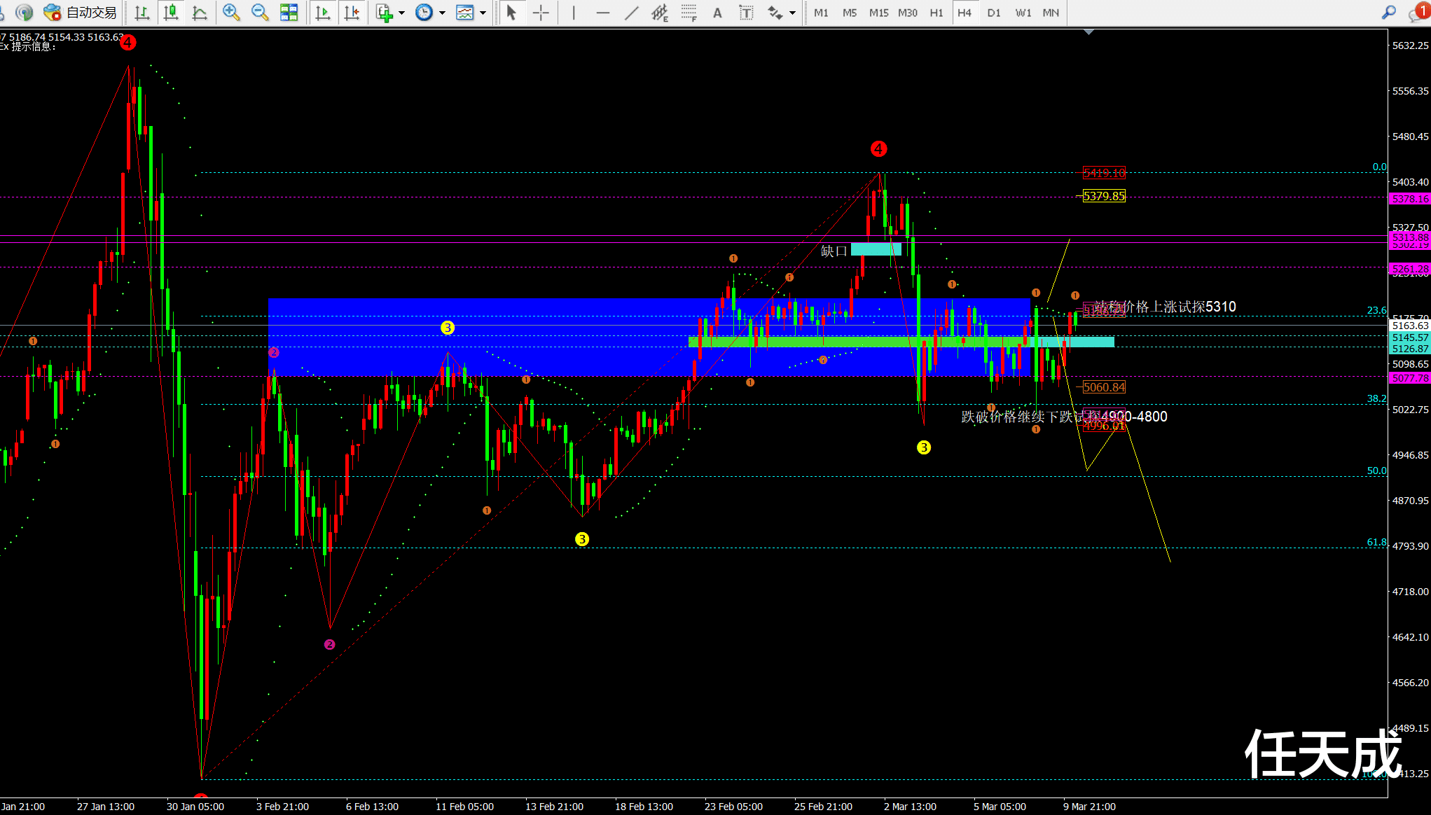【1】 回踩5130-35附近多,防守5110,看5190破位5200看5260-5300