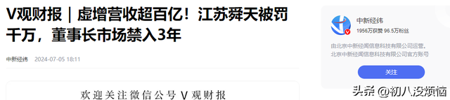 V观财报|虚增营收超百亿!江苏舜天被罚千万,董事长市场禁入3年——中新经纬2024-07-05