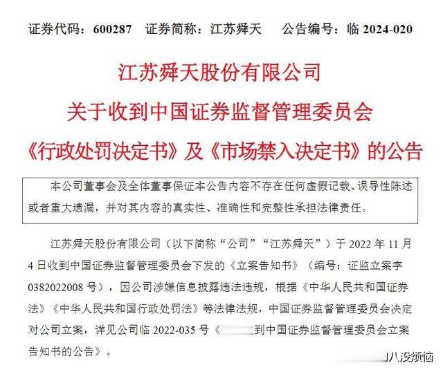 2024年,证监会的处罚决定书给这场持续十余年的闹剧画上了句号,江苏舜天被处以1000万元罚款,公司及相关高管合计被罚1430万元,这个数字在A股处罚史上不算最高,但考虑到公司目前总市值仅15亿元左右,罚款金额已经占到市值的近1%,力度不可谓不大。