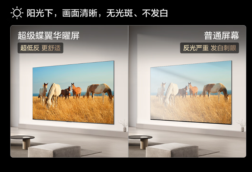 另外,它搭载的超级蝶翼华曜屏,还是TCL华星推出的高端电视屏幕,不仅拥有7000:1的超高原生对比度,其采用的还是行业里最高端的0.5%反射率的低反膜,能大幅削减环境光干扰;配合TCL首创第四代液晶电视外观:极景・无黑边技术,极限缩减屏幕黑边,实现了电视屏幕可视面积接近100%,带来更沉浸的视觉体验。