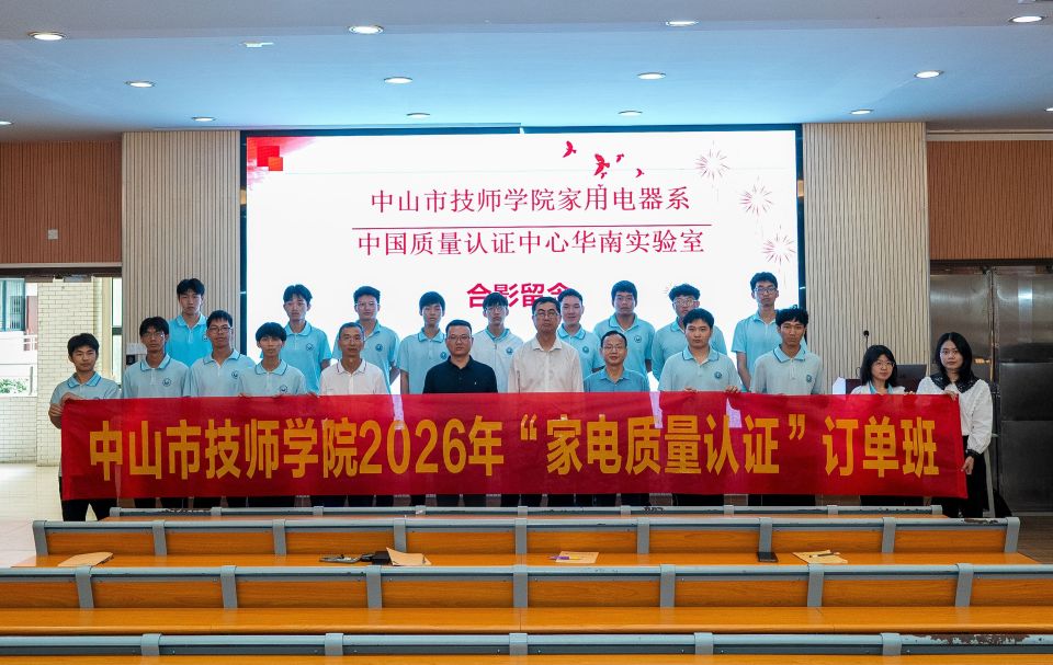 近日,中山市技师学院家用电器系与中国质量认证中心华南实验室举行订单班开班仪式。校企双方就深化产教融合、共育家电质量检测高技能人才达成全面共识,将携手为中山家电产业高质量发展注入新动能。