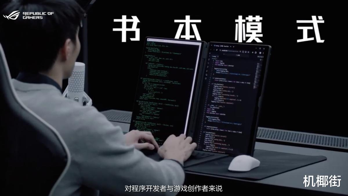 最常用的,依然是笔记本模式。键盘与下屏组合后,用起来和传统笔记本几乎没有区别,日常办公、移动处理工作、线上学习都很顺手,轻薄的机身也方便随身携带,适合长时间通勤和临时办公。当需要进入高效率状态时,双屏模式的优势会非常明显。两块 16 英寸 ROG星云原画屏同时展开,等效超过 21 英寸的显示空间,多窗口内容可以直接铺开。无论是剪视频时主屏预览画面、副屏固定时间轴,还是写代码时一边编辑、一边实时调试,窗口各就各位,工作节奏会明显更连贯。