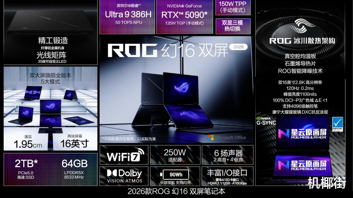 这种“把效率真正落到实处”的思路,并不只出现在机器人身上。在 PC 领域,同样不乏看点。ROG 幻16 双屏,凭借英特尔酷睿 Ultra 9 处理器 386H性能与能效基础,以及独特的双屏形态,精准切中了当代打工人对高效移动办公的核心诉求,成为展会期间办公设备领域讨论度颇高的一款产品。