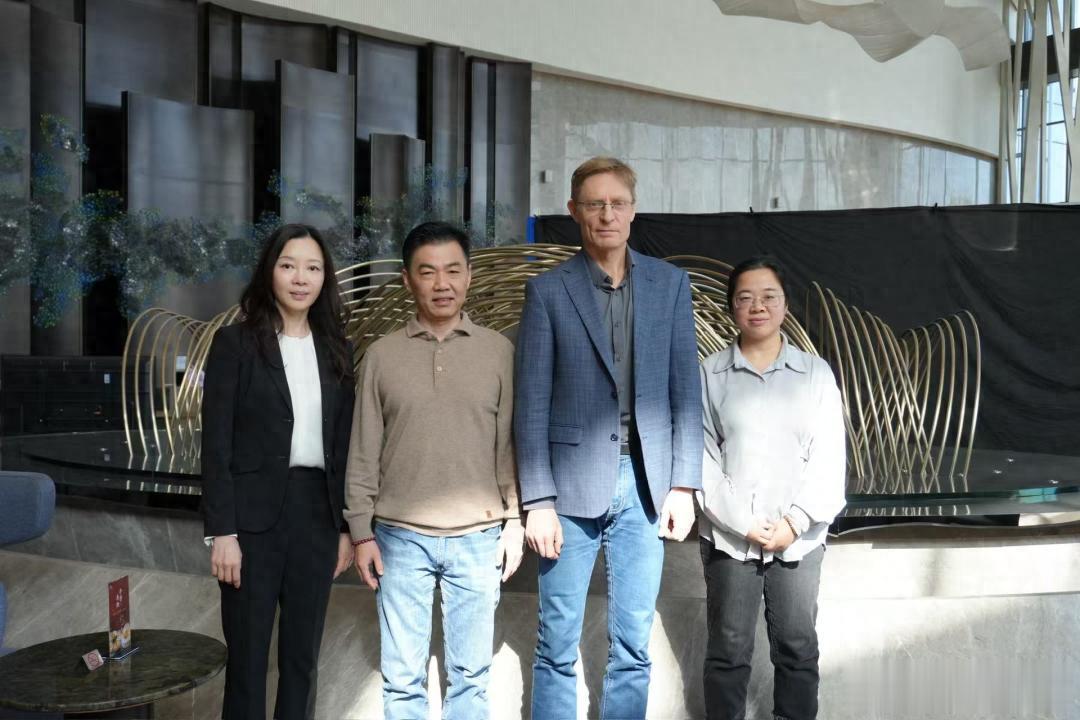美卓筛分事业部中国区总经理吕明(左二)、美卓全球筛分业务副总裁Jouni Mahonen(右二)、砂石骨料网创媒服务中心总监王婷婷(右一)、美卓大中华区营销传播高级经理何鸥(左一)