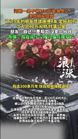 2月4日消息,河南的朱先生花200万买的大G借给朋友当婚车,被认识9年的朋友孙先生开着连撞路边停放的4辆车,定损41万多。