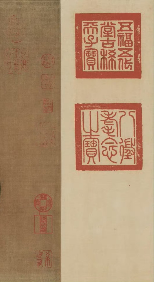 鉴藏印鉴:本幅及隔水钤有“希世有”“金匮宝藏陈氏仁涛”等藏印,以及乾隆、嘉庆朝内府鉴藏印十余方,清晰勾勒出其从清宫到近代收藏家陈仁涛,再回归故宫的流传轨迹。