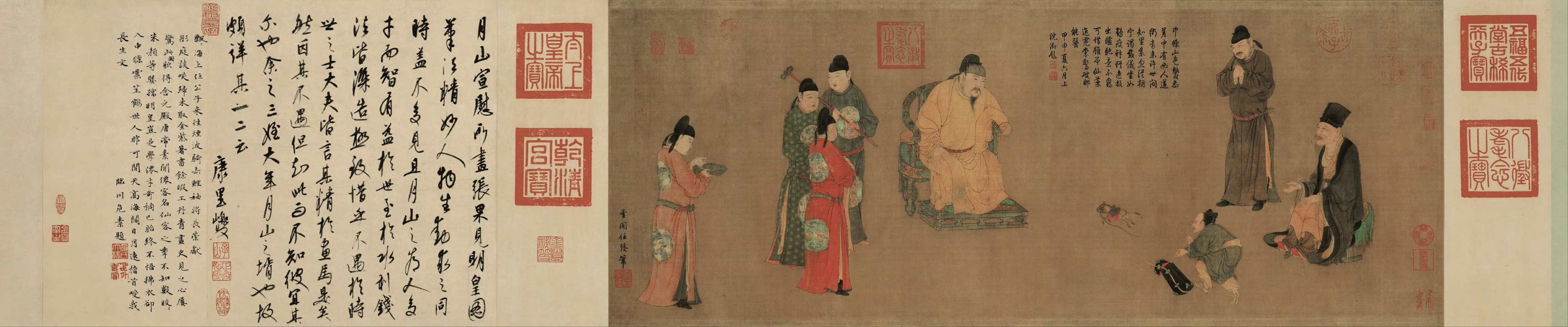 元.任仁发《张果见明皇图卷》。纵41.5厘米,横107.3厘米。