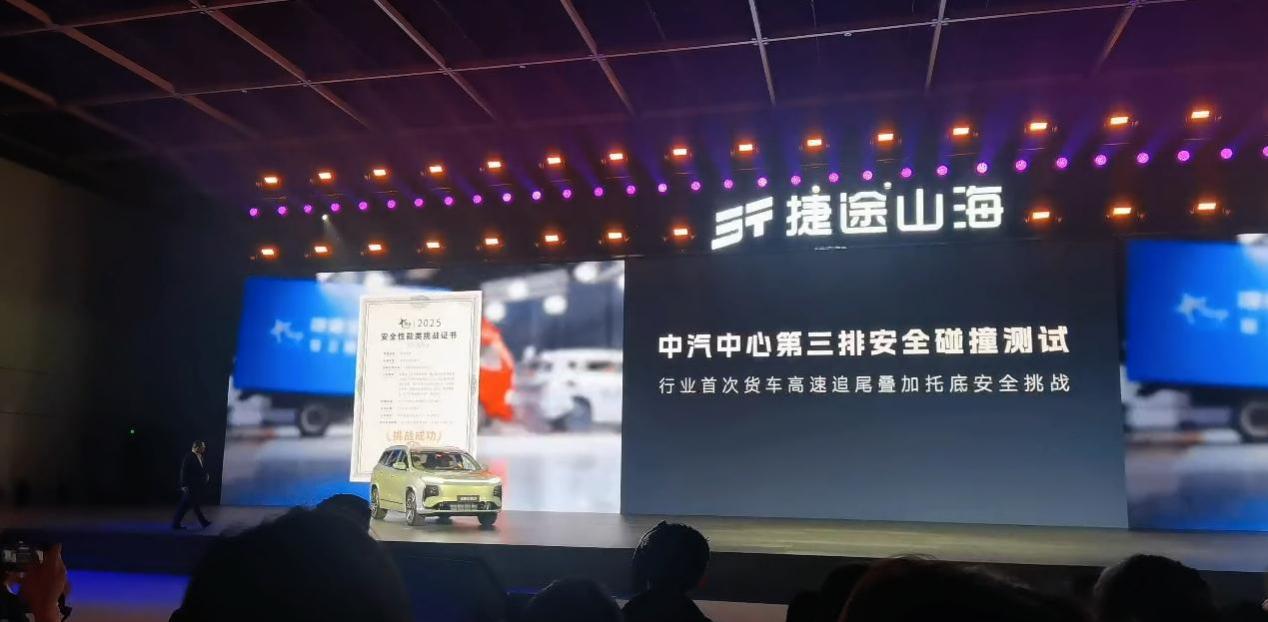 安全性一直是消费者购车时考虑的重中之重。在这方面,新款山海L9也颇具亮点。捷途在上市之前,安排了多项安全测试,包括货车追尾测试以及电池包的托底试验。在中汽研进行的实际观摩中,测试结果表明第三排座椅的护航设计赋予了车内乘客更高的撞击保护,确保了他们的安全。此外,底盘的电池包在被托底后的静置测试中并未发生火灾等极端情况,這都为消费者的购车决策增添了信心。